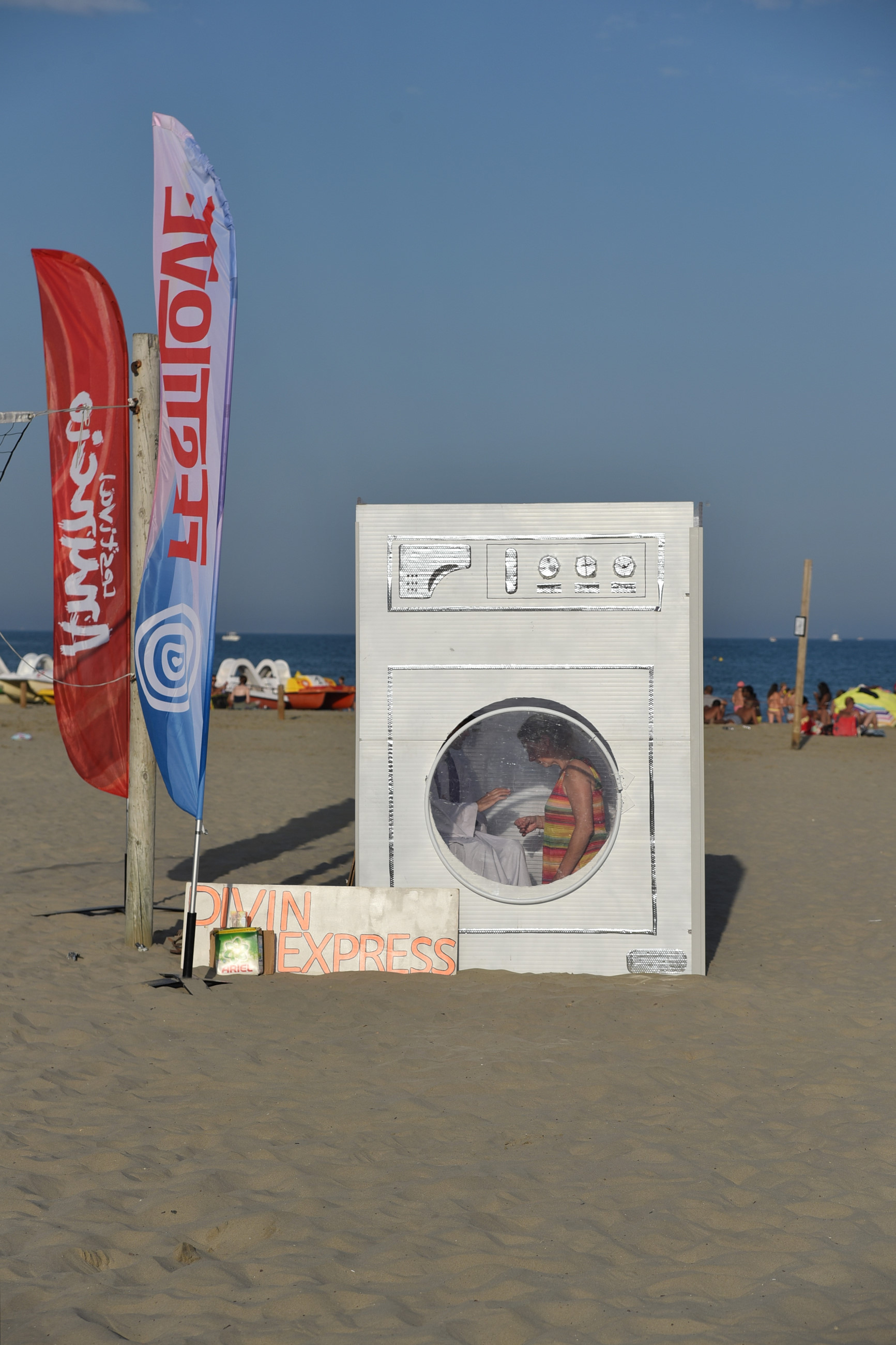 Création de l’année de la miséricorde, le lavomatic géant est un confessionnal portatif et missionnaire. Il est posé sur les places et sur les plages: un prêtre à l’intérieur confesse ceux qui le souhaitent.