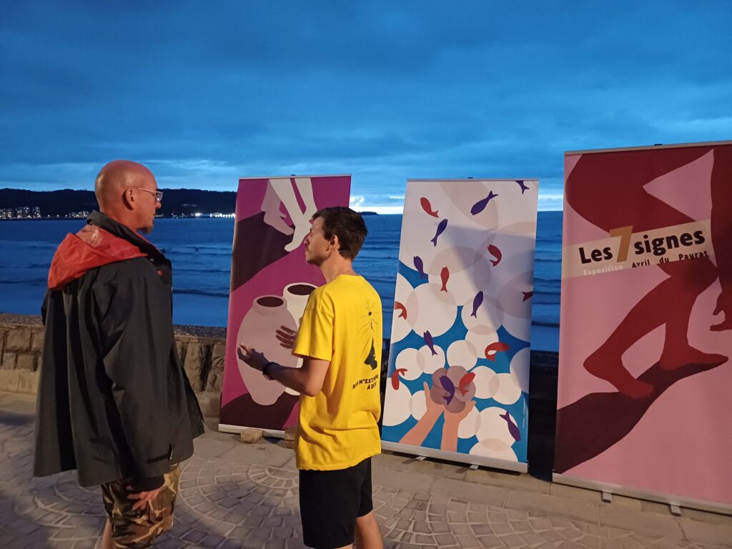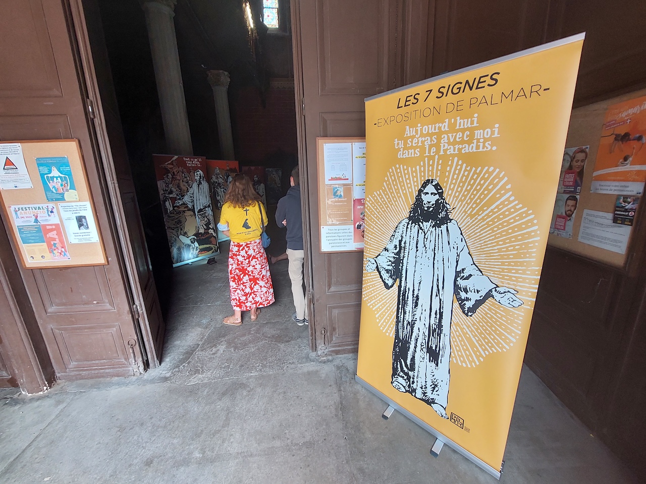 Lors du Festival 2023, nous avons exposé les oeuvres que nous avions commandé à deux artistes : Avril du Payrat et Nicolas de Palmaert sur le thème des 7 signes de Jean.