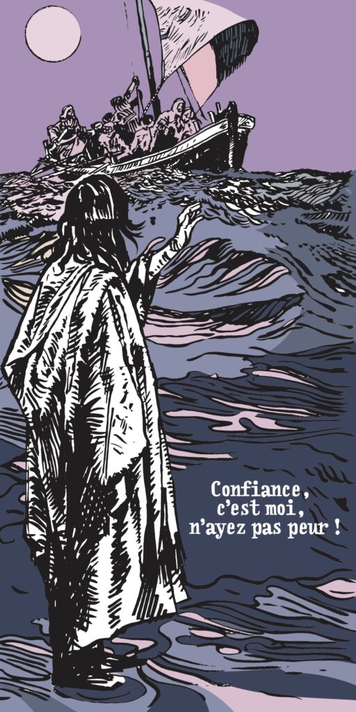 Nous restons à l’écoute et après avoir expliqué parler de l’identité du Dieu que nous fréquentons, nous lui demandons si nous pouvons prier pour qu’il rencontre ce Dieu d’Amour. A la fin de la prière, nous lui demandons s’il a ressenti quelque chose. Il n’a pas vraiment répondu mais à rajouté « euh… au fait, j’ai un fils qui a des problèmes ». Nous avons donc prié à nouveau pour lui et son fils. Nous l’avons ensuite quitté en lui donnant une médaille miraculeuse. Il était très touché en disant que sa maman s’appelait Marie aussi. Il a voulu mettre la médaille sur sa chaîne pour garder cette deuxième maman auprès de son coeur. »